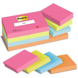 I foglietti Post it® colorati contribuiscono a personalizzare i messaggi con il colore per non farli passare inosservati. Blocchetti in colori assortiti: rosa power, verde acido, acqua, arancio acceso, rosa guava. Formato: 38 x 51 mm. Contenuto: 12 blocchetti da 100 fogli.