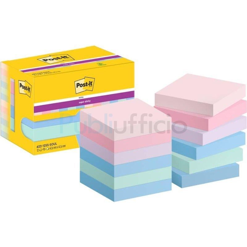 Foglietti Post-it® Super Sticky Soulful conf. 12 blocchetti da 90 ff - 47,6x47,6 mm - 622-12SS-SOUL