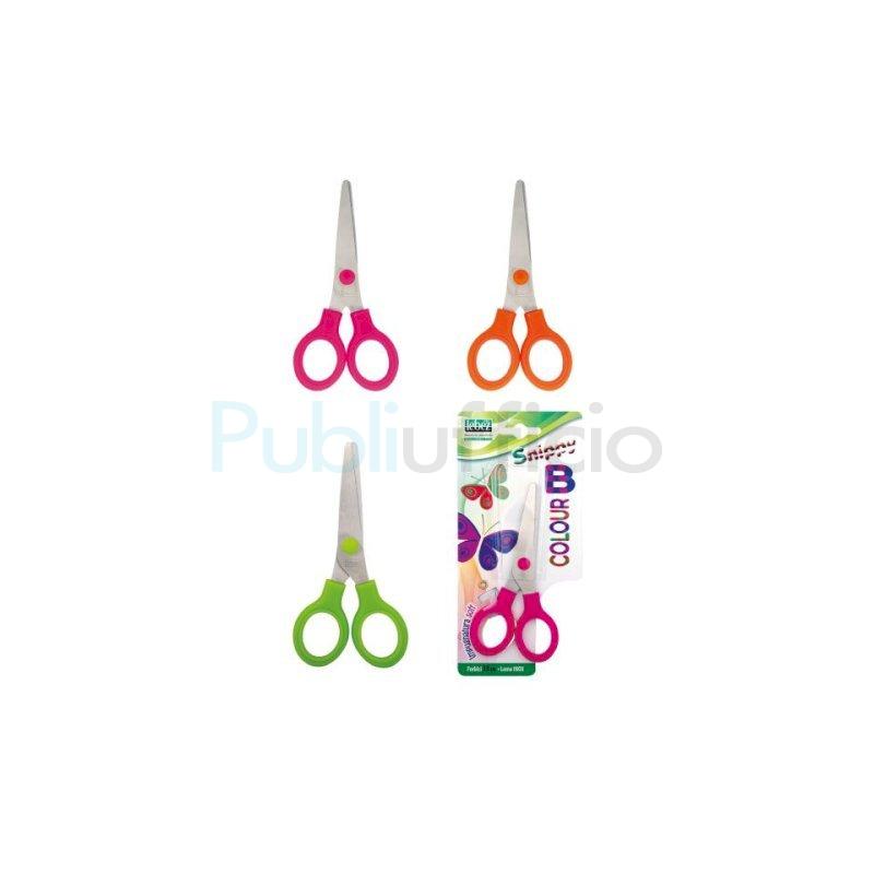 Forbici a punta arrotondata Snippy Soft. Realizzate con lama da 13 cm in acciaio inox e impugnatura in plastica morbida. Disponibile con impugnatura in 3 colori assortiti: verde, rosa e arancione. Confezione composta da 12 pezzi. Ideali per uso scolastico.