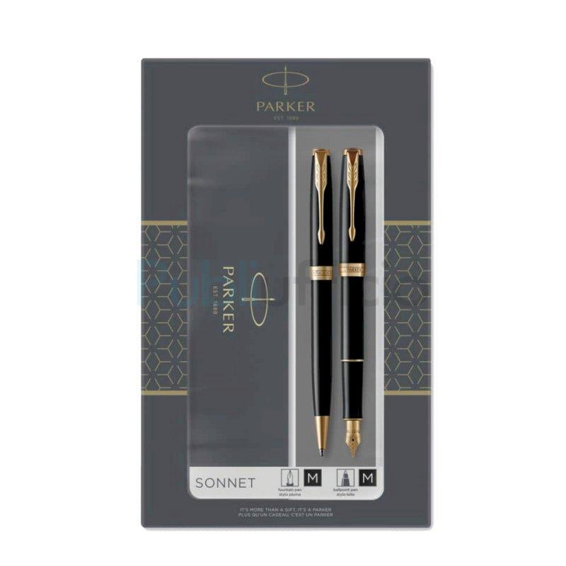 Gift set duo Parker Sonnet Black GT penna a sfera M + penna stilografica F inchiostro blu - 2093371