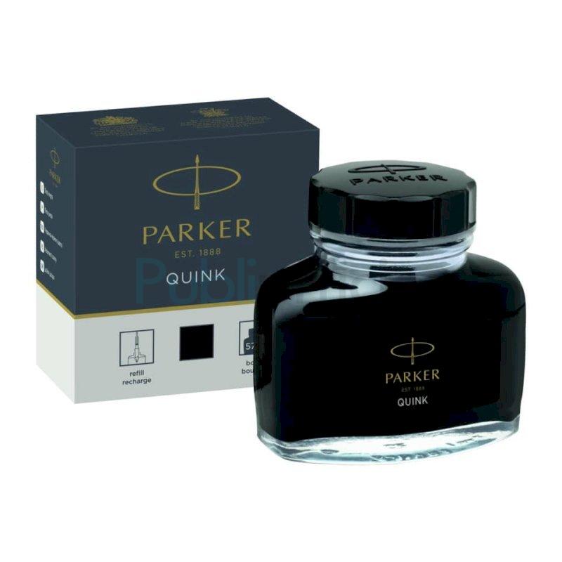 Inchiostro Quink per penna stilografica Parker. Formato 57 ml. Colore nero.