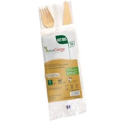 Kit forchetta coltello tovagliolo in conf. 200 pz. Posate 165 mm in legno di betulla. Tovagliolo 2 veli 33 x 33 cm. Prodotto 100% ecologico e biodegradabile. Legno proveniente da foreste certificate FSC, materiale riciclato e/o controllato. Idoneo al contatto con gli alimenti come da regolamento (CE) 1935/2004 e D.P.R. 777/1982. Alta resistenza al calore e a cibi e bevande acidi e salati. Confezione ecologica smaltibile nell'organico.