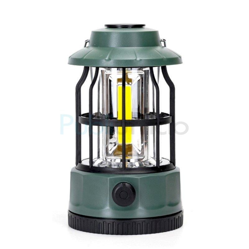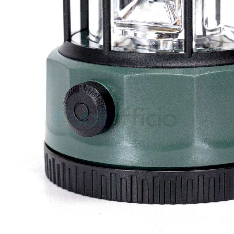 Lampada da campeggio dimmerabile con manopola e batteria. Utilizza batterie 3AA (non incluse). Luce calda. Flusso luminoso: 300 lm. Voltaggio: DC 4,5 V. Dimensioni: D.101 x H.175 mm. Per utilizzo interno ed esterno. Vita utile: 25,000 h.