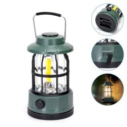 Lampada da campeggio dimmerabile con manopola e batteria ricaricabile. Batteria al litio da 1.200 mAh. Luce calda. Flusso luminoso: 200 lm. Voltaggio: DC 3,7 V. Dimensioni: D.101 x H.175 mm. Utilizzo interno ed esterno. Vita utile: 25.000 h.