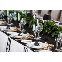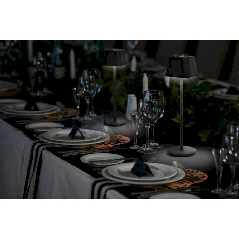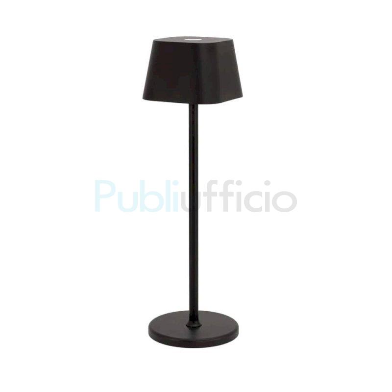 Lampada da tavolo GEORGINA. Una moderna e semplice linea dotata di una luce LED senza fili. Adatta all'ambiente interno ed esterno. Durata della batteria fino a 20 ore. In dotazione cavo di ricarica con attacco magnetico facile e veloce. Dimensioni 11x11x38 cm. Peso 0,8 kg. Forma squadrata. Colore nero.