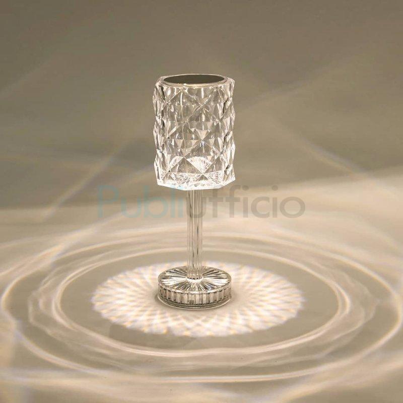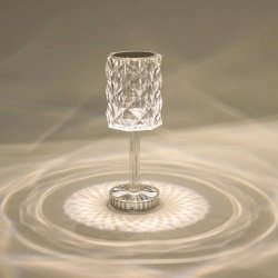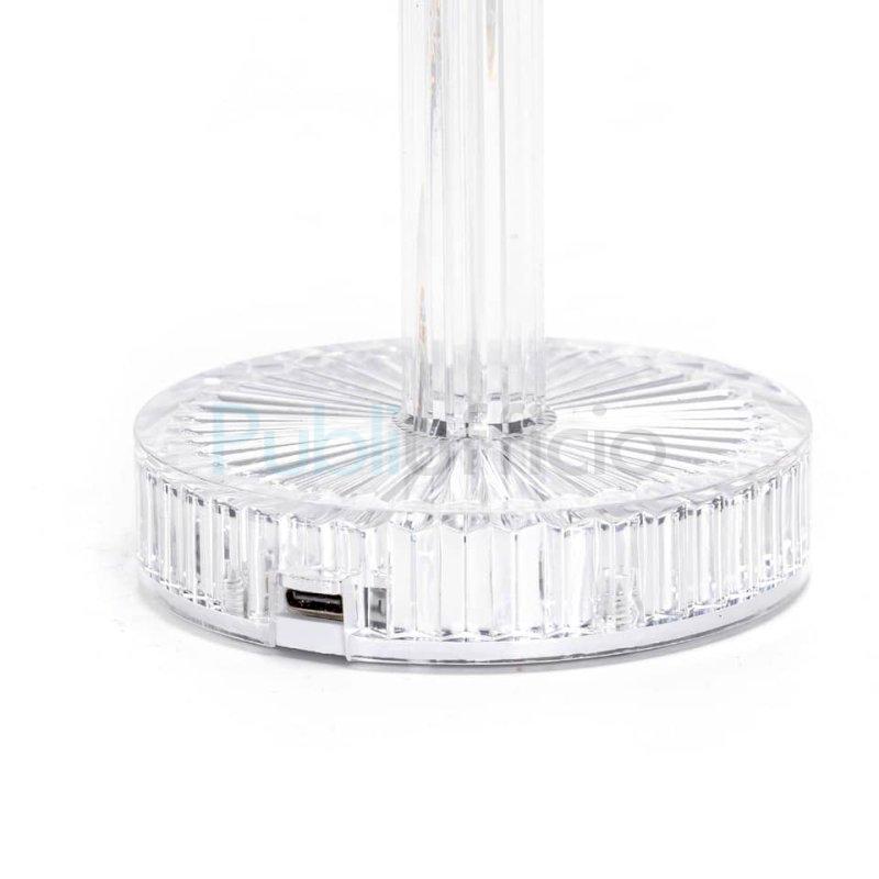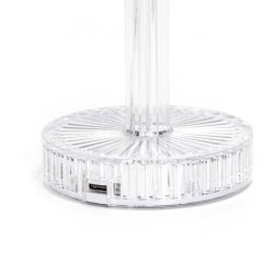 Lampada da tavolo trasparente. Potenza: 1W. Colore della luce: luce gialla-luce bianca-bianca naturale. Temperature di colore: 2700-6500K. Flusso luminoso: 105lm. Angolo di illuminazione: 120°. 4-5 ore di illuminazione con 2-3 ore di piena ricarica. Non utilizzare durante la ricarica. Interruttore touch, basta un tocco per cambiare la temperatura del colore. Capacità batteria: 1*1800mAh. Vita utile: 25000h. Materiale: PS. Dimensioni: Φ90*H260mm.