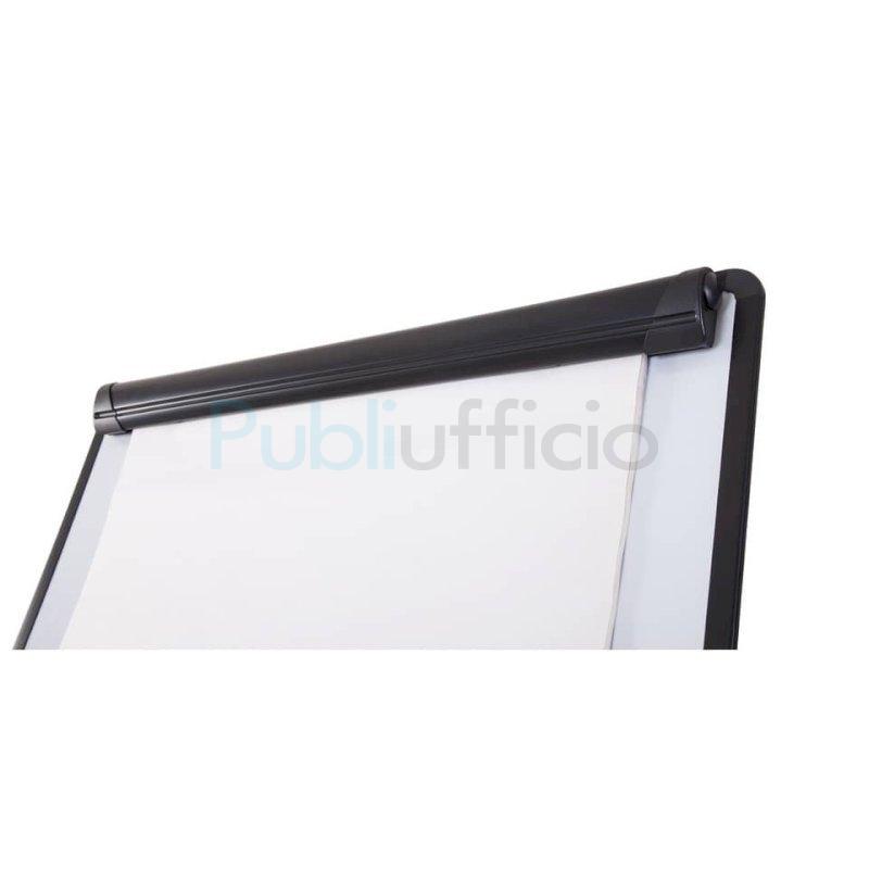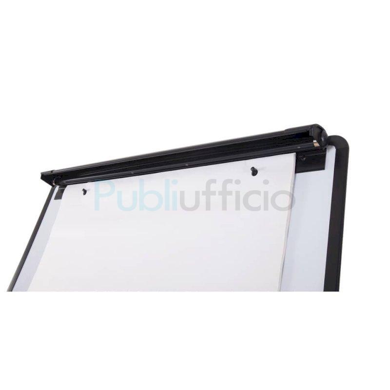 Cavalletto non magnetico con cornice in plastica con supporto regolabile per fogli mobili. Facile da montare e di altezza regolabile. Morsetto regolabile per fogli, compatibile con qualsiasi blocco di carta per lavagna a fogli mobili. Idoneo per le dimensioni Euro (1000 x 700 mm). Pratico e leggero. Vassoio portapenne a lunghezza intera. Cornice di plastica nera. Peso 7,4 kg. Superficie scrivibile 98x71 cm. Materiale superficie: melaminico
