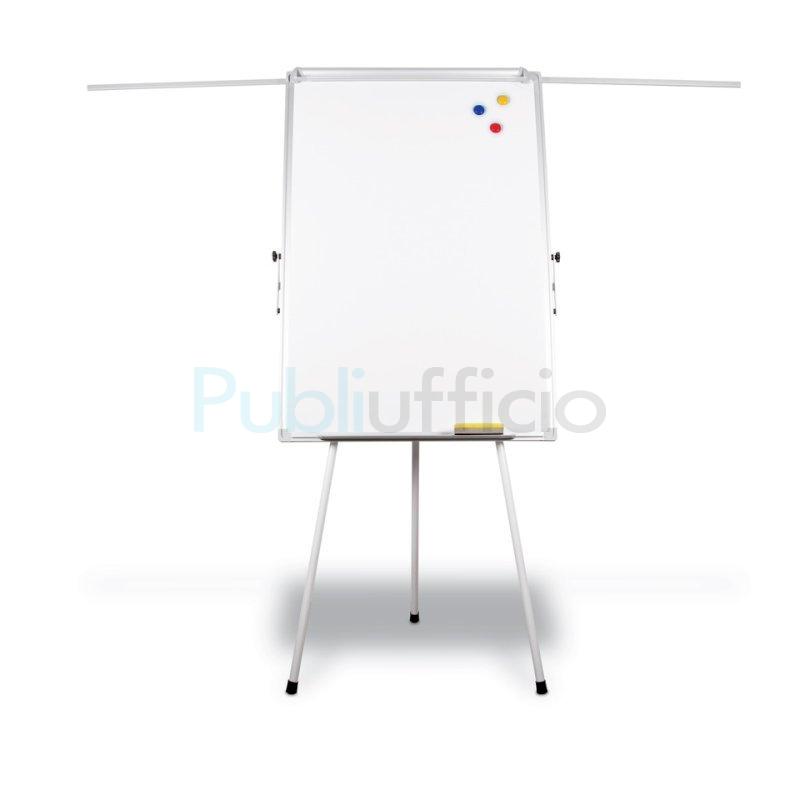Lavagna magnetica scrivibile a secco con portablocco e comoda vaschetta portaccessori. Ganci regolabili per qualsiasi tipo di blocco e gambe telescopiche ad altezza regolabile. Prolunga bilaterale per l’esposizione di fogli singoli. Formato 70x100 cm. Colore bianco.