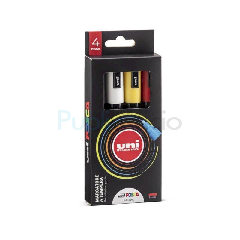 Marcatore a tempera con inchiostro pigmentato Uni Posca - punta tonda 2,5 mm assortiti - astuccio 4 pz - M PC5M 4P
