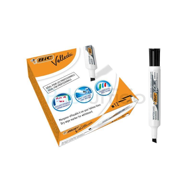 Pennarello Whiteboard Marker Bic Velleda 1791 per lavagne bianche cancellabile. Appositamente sviluppati per gli uffici e le scuole che usano le lavagne BIC Velleda, i resistenti marcatori cancellabili a secco garantiscono una precisione assoluta. Inchiostro a base di chetone. Si cancella perfettamente senza lasciare segni. Cappuccio del colore dell’inchiostro con blocco di sicurezza. Fusto in plastica. Punta a scalpello con tratto da 3,3-4,6 mm. Colore nero.