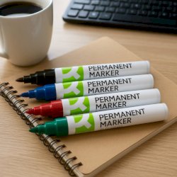 Marcatore permanente con fusto in metallo e punta conica da 4 mm. Atossico e con basso livello di odore. L'inchiostro permanente asciuga rapidamente ed è resistente all'acqua. Colore nero.