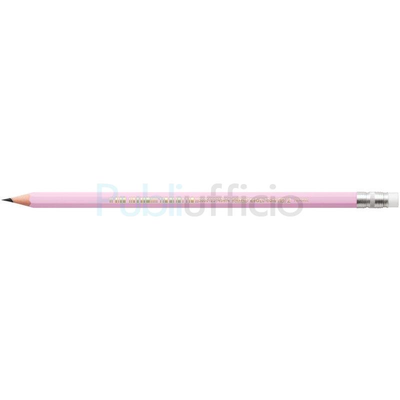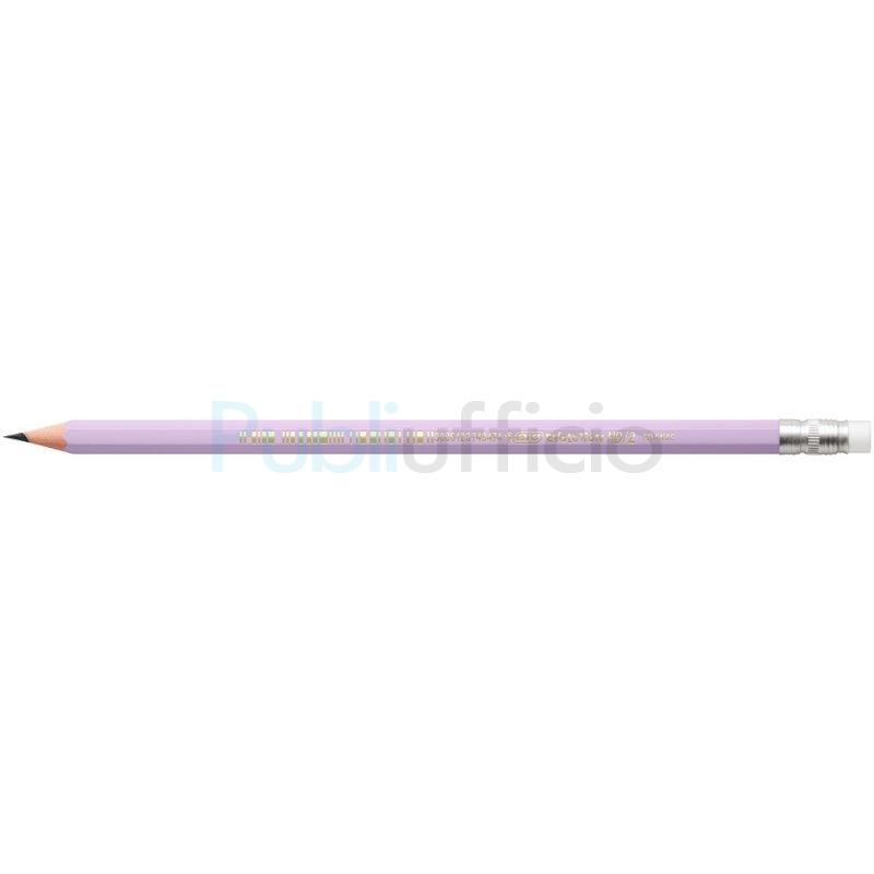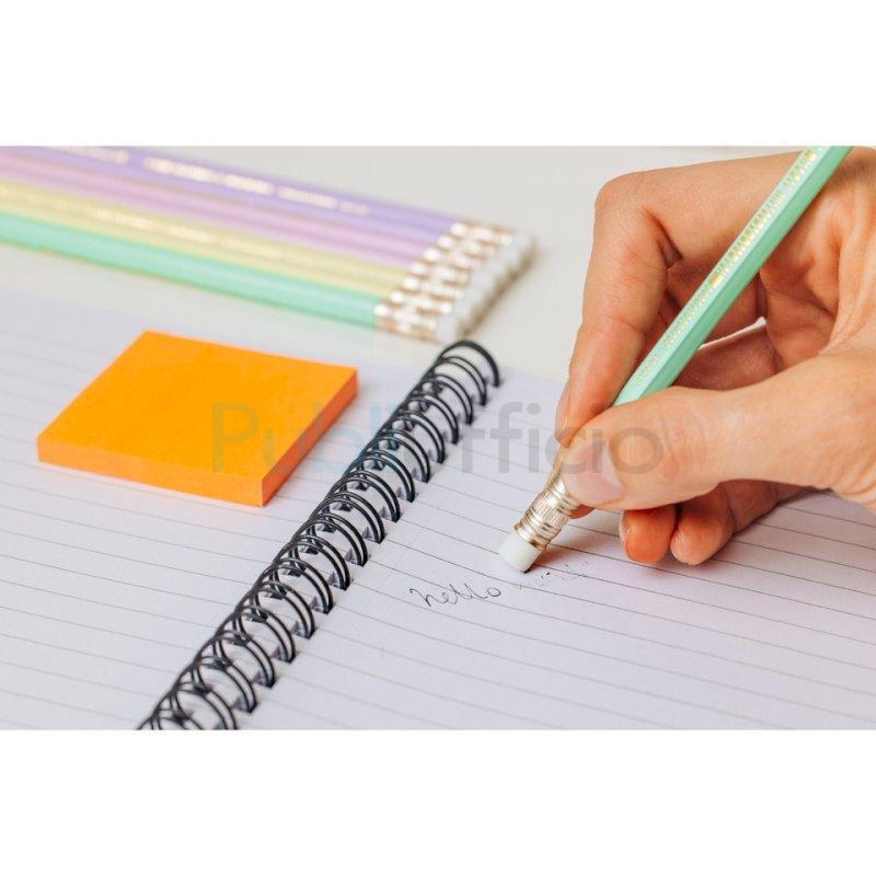 Matite in grafite in resina senza legno con gommino. Fusti in colori assortiti in 4 tonalità pastello. Facili da temperare. Non fanno schegge se spezzate. Mina ultraresistente. Realizzate con il 52% di materiali riciclati. Confezione da 12 pezzi.