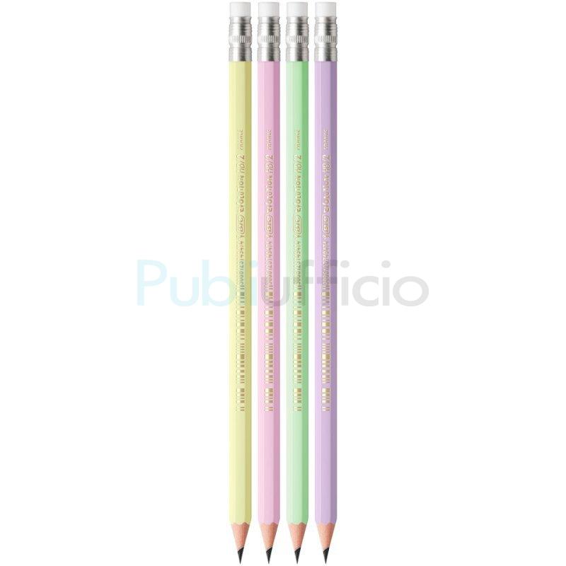 Matita Evolution BIC Pastel - conf. 12 pezzi - colori assortiti - con gommino - 518306