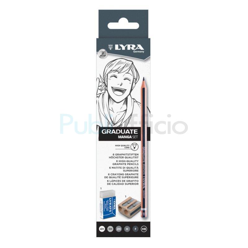 Il disegno a matita è la base dell’illustrazione e della creazione. Il Set di matite grafite Lyra Graduate Graphite Manga nelle gradazioni dure sono utilizzate per disegnare le tavole Manga, grazie al loro tratto netto, pulito e definito. Si presentano in un compatto set con gli altri strumenti immancabili del disegno: temperamatite in legno e gomma di qualità.
