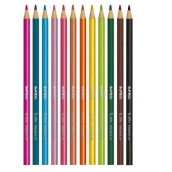 Pastello triangolare wood-free prodotto con tecnologia ad estrusione, mina solida e resistente Ø 3,3 mm. Facile da temperare. Disponibile in astuccio da 12 colori.