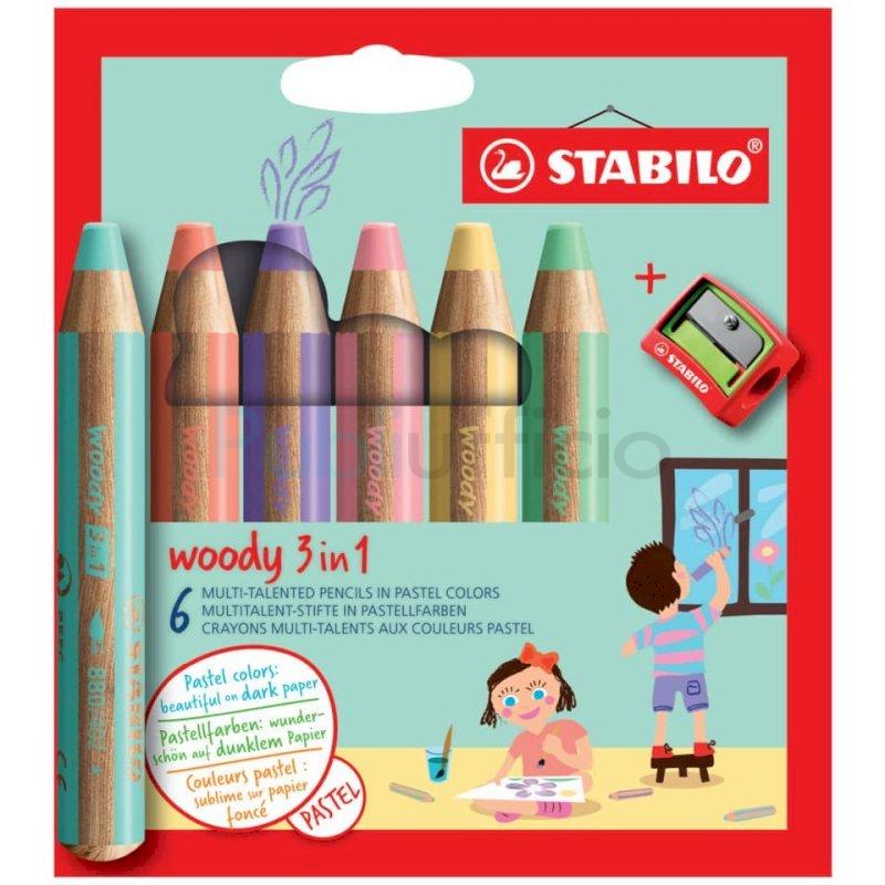 Matite colorate Stabilo Woody 3 in 1 punta larga conf. 6 colori Pastel assortiti 8806-3