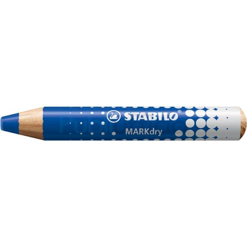 Stabilo MARKdry è un matitone colorato pensato per lavagne bianche e a fogli mobili. Colore: blu. Proprio come se fosse un marcatore, scrive su lavagne bianche, in ardesia e a fogli mobili, oltre alla carta e diverse superfici lisce come il vetro. Inoltre, può essere cancellato con un semplice panno umido o asciutto. Grazie alla robusta mina XXL, il colore rimane intenso fino all'ultimo tratto. Stabilo MARKdry è pronto all'uso in qualsiasi momento! Non secca, non macchia, è inodore ed è cancellabile senza lasciare tracce e sbavature. Perfetto per la scuola o per l'ufficio, è realizzato al 100% con legno ecosostenibile e certificato PEFC.