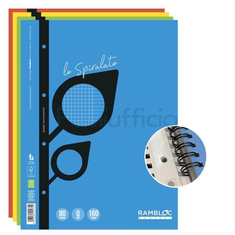 Blocco Spiralato rinforzato Rambloc. 160 pagine. Formato A4. 80 g/m2. Certificazione FSC®. Rigatura 0Q.