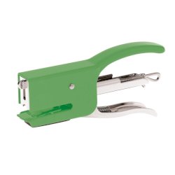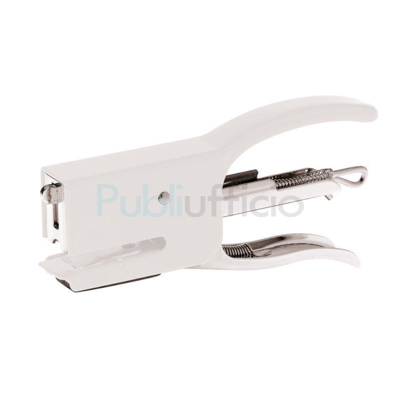 Mini cucitrice a pinza, interamente in metallo, a punto chiuso per punti n° 10. Capacità di cucitura 15 fogli da 80 g. Profondità di cucitura 27 mm.