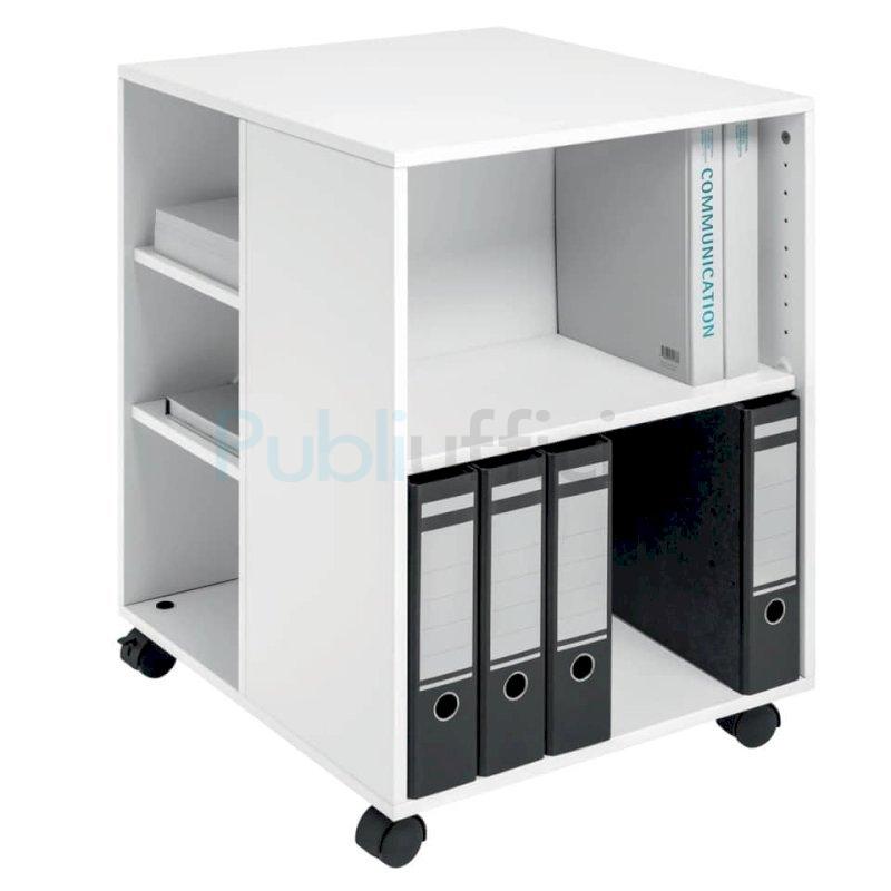 Mobile multifunzione versatile ideale per riporre dispositivi elettronici e attrezzatura da ufficio. Facile da spostare e sicuro nel movimento (dotato di 4 ruote pivotanti, di cui 2 provviste di dispositivo di bloccaggio). Ha 6 ripiani robusti (16 mm) per raccoglitori, carta o attrezzatura da ufficio, ecc. Rimane aperto su 3 lati per un facile accesso. Facile da assemblare grazie alle istruzioni di montaggio incluse. Ogni ripiano può supportare fino a un massimo di 25 Kg. Capacità di carico totale 60 Kg. Larghezza: 528 mm. Altezza: 748 mm. Profondità: 592 mm. Colore bianco.