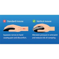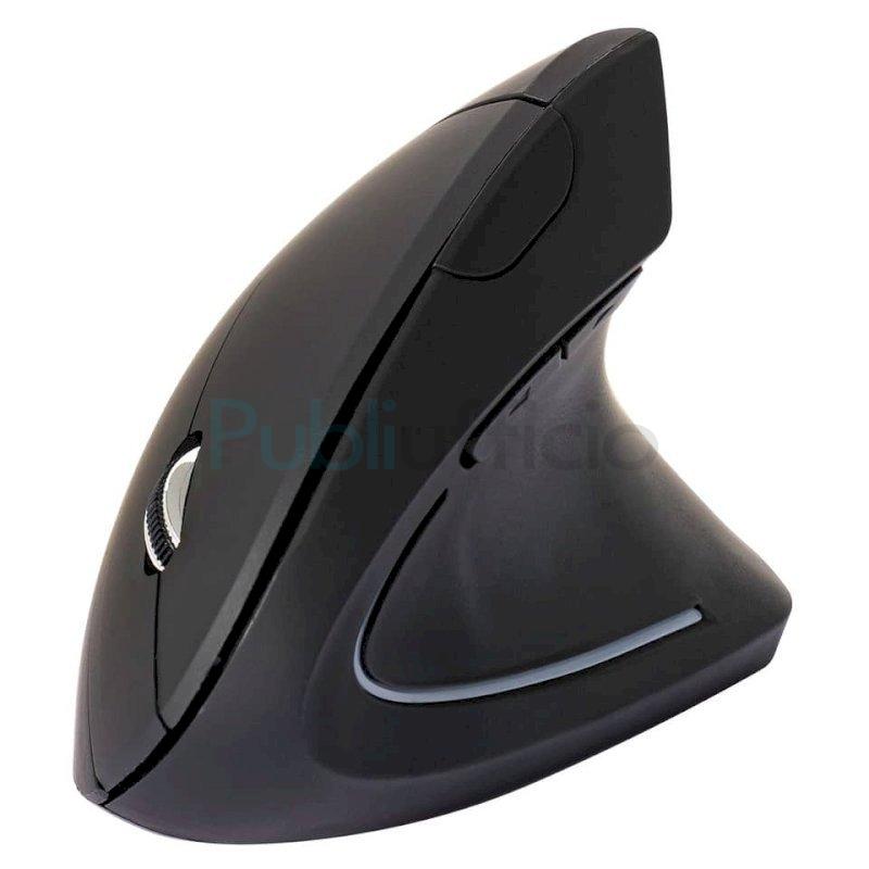 Mouse ergonomico verticale wireless. Colore nero. Per destri. Dotato di 6 bottoni e luce led. Funzionamento a batteria con n°2 AAA (non incluse). Dimensioni: 123 x 65 x 82 mm.