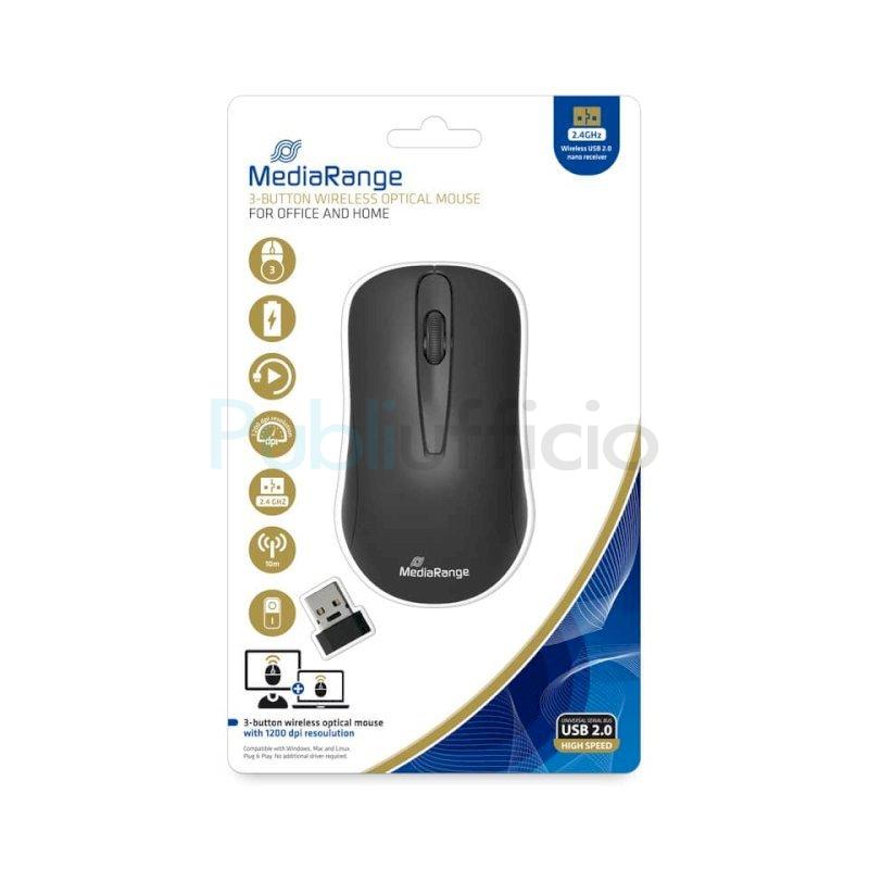 Mouse ottico 3 pulsanti wilreless USB 2.0 Media Range nero MROS209