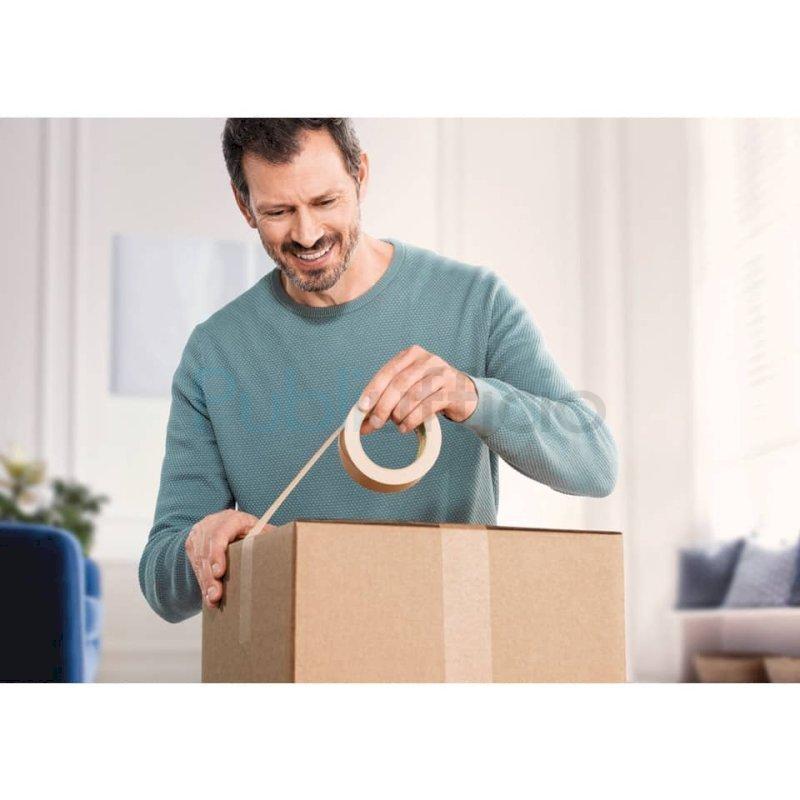 Il nuovo nastro da imballaggio di tesa tesapack® Paper standard, è una soluzione per sigillare le scatole di cartone leggere e medio-pesanti fino ai 10 kg che rispetta l'ambiente. L'imballaggio è sicuro e sostenibile con il nuovo Paper Standard. Il nastro adesivo è realizzato con carta certificata FSC e rivestito su un lato con un adesivo in gomma naturale. Nello smaltimento della scatola, non c'è la necessità di rimuovere il nastro in carta dallo scatolone. Questo rende il suo riciclo un gioco da ragazzi. Il lungo processo di rimozione del nastro adesivo diventa così un ricordo del passato. Il nastro adesivo da imballaggio con un'alta performance è resistente alle temperature, offre una chiusura affidabile anche quando esposto a sbalzi di temperature. Non solo, ma anche l'adesivo in gomma naturale unisce e lega, creando un sigillo forte. Paper Standard può essere strappato con le mani ed è facile da svolgere. Il 56% di questo nastro da imballaggio è realizzato con materiali biodegradabili, il che significa ridurre fortemente le emissioni di CO2 del prodotto stesso. Con tesapack Paper Standard, avrai una resistente soluzione adesiva e contribuirai a salvaguardare l'ambiente. Dimensioni 50 m x 50 mm.