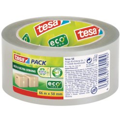 Tesapack® ECO & Ultra STRONG è un nastro da imballo in PET riciclato post-consumo al 70% . Il nastro da imballo è caratterizzato da un materiale di supporto resistente dotato di eccellenti proprietà meccaniche e da un adesivo acrilico a base acquosa, fattori che rendono questo prodotto la soluzione perfetta per applicazioni di imballaggio di peso medio ed elevato fino a 30 kg. Srotolare il nastro è facile e veloce. Spessore medio 56 μm. Lunghezza 66 m. Larghezza 50 mm. Colore trasparente.