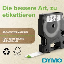 Nastro per etichettatrici Dymo D1. Il nastro è bianco con stampa blu. Dimensioni rotolo : 9 mm x 7 m. Queste etichette autoadesive sono facili da staccare, resistenti ai raggi UV e idropellenti, garantendo massima durabilità anche in un utilizzo esterno. Realizzati con materiali riciclati all' 80%.