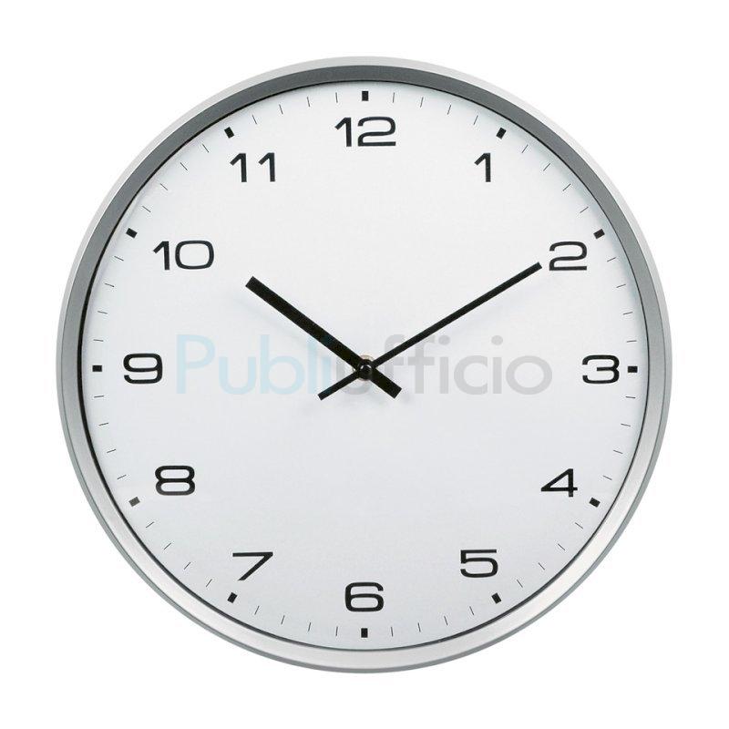 Orologio da parete a batteria in ABS argentato con meccanismo di qualità al quarzo. Diametro: 33x4 cm.