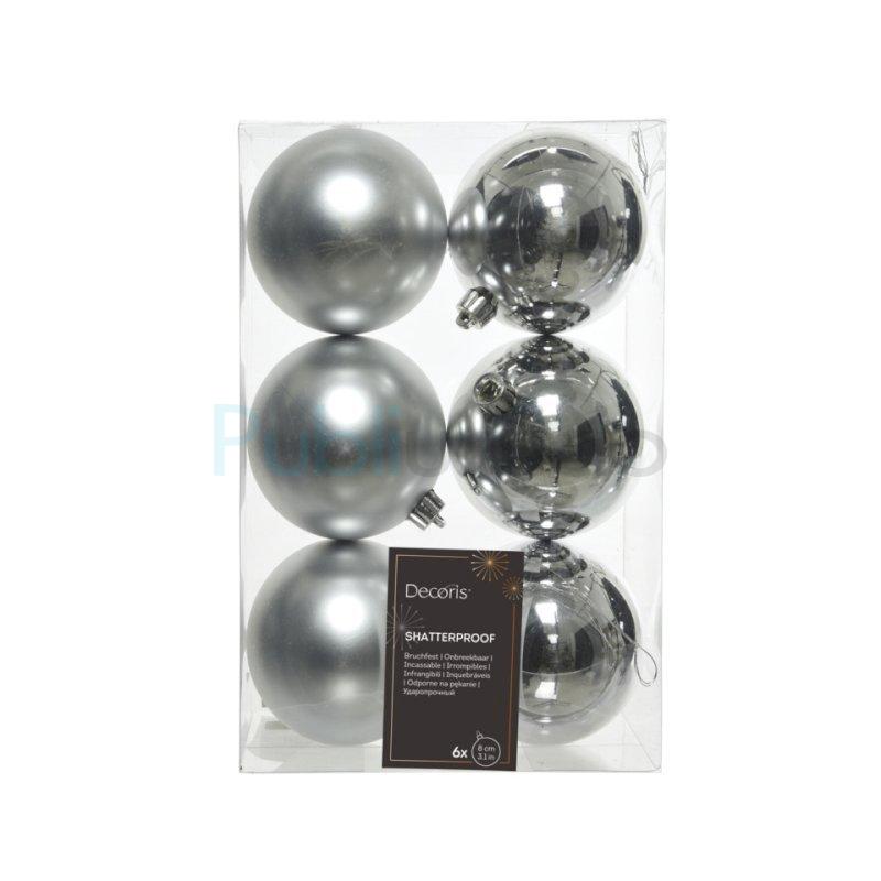 Palline di Natale 8 cm infrangibili argento - conf. 6 pz - 848879051