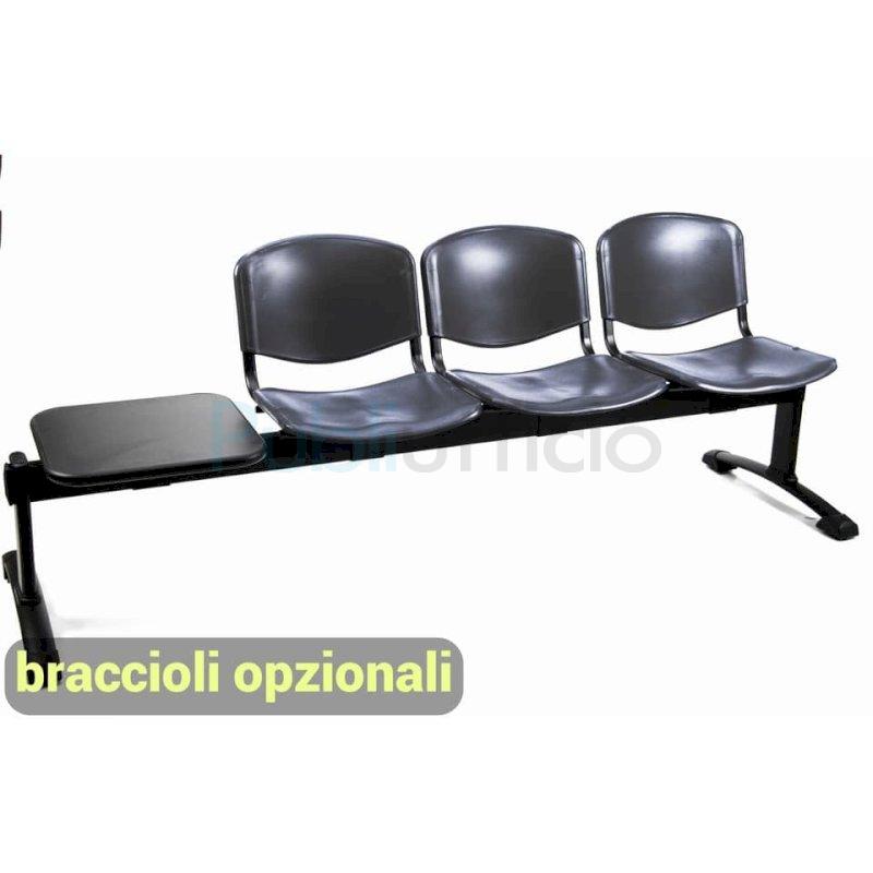 Panca 3 posti attesa Unisit Dado D5P3PT con tavolino - PPL nero D5P3PT/NE