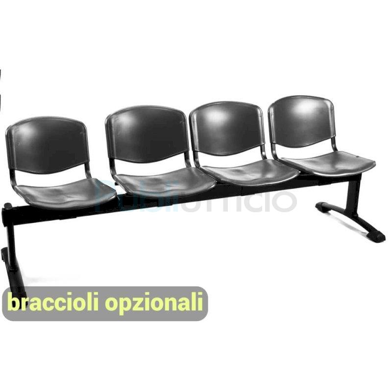 Panca 4 posti attesa Unisit Dado D5P4P - PPL nero D5P4P/NE