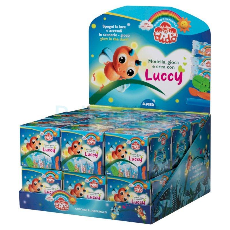 Didò ama la natura e tutti i suoi abitanti, soprattutto gli insetti! Ed ecco Luccy, la lucciola da salvare attraverso l’educazione al corretto utilizzo dell’energia elettrica, in particolare la luce. Spegni la luce! Accendi Luccy, all’interno ci sono i corpicini in cartoncino delle Lucciole e lo scenario che si illuminano al buio! Contiene: 3 salsicciotti Didò da 50 g, 1 coltellino, 1 mattarello, 1 paio di forbicine e 1 cartoncino con elementi che si illuminano al buio.