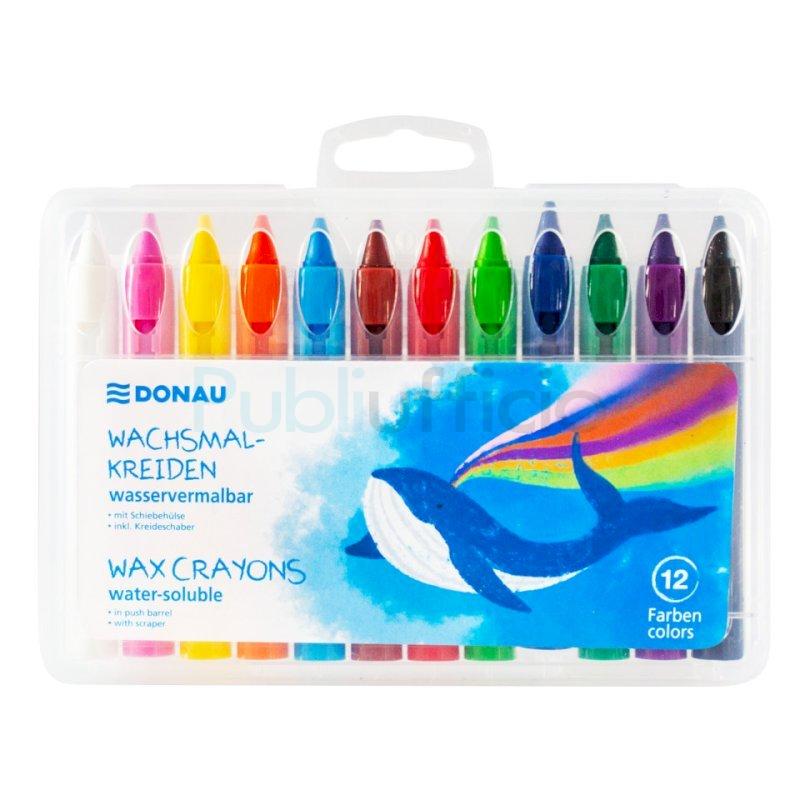 Pastelli a cera acquerellabili Donau - astuccio appendibile trasparente da 12 colori assortiti - 322300