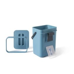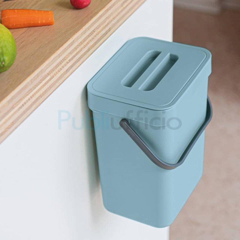 Gino è il bidoncino per rifiuti compostabili/organici indispensabile in cucina. Si può appendere allo sportello, al cassetto o a qualunque mobile grazie al gancio in plastica o al supporto adesivo. Praticissimo, maneggevole, sempre a portata di mano. Posizionato sotto al piano di lavoro è il braccio destro mentre tagli, pulisci, scarti, affetti. Dotato di coperchio, manico, gancio riposizionabile, supporto adesivo, anello guida ferma -sacchetto. Capienza: 5 litri. Portata massima: 5 kg. Colore: Avio. Dimensioni: 21 x 14,5 x H.24,5 cm.