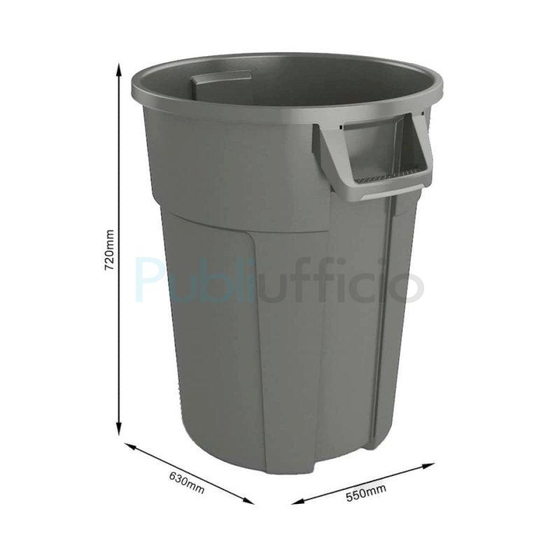 Pattumiera TITAN da 120 LT con coperchio per raccolta differenziata. Ideale anche per uso esterno, molto robusta e resistente. Prodotto dotato di maniglie superiori per facilitare spostamento e manovra e di maniglie inferiori a scomparsa per agevolare sollevamento e spostamenti. Facile da pulire, lavare e disinfettare. Colore grigio. Dimensioni: 550 x 630 x 720 m.