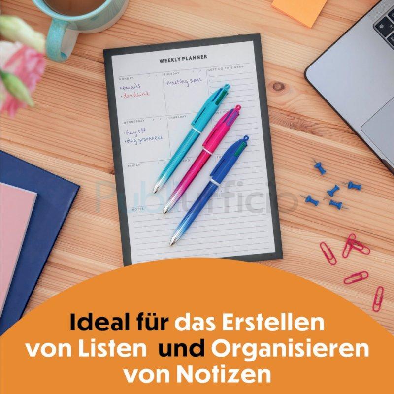 L'iconica penna a scatto BIC 4 Colori dai 4 colori classici (nero, blu, rosso, verde) con una formulazione d'inchiostro più fluida. BIC 4 Colori Smooth è il 40% più scorrevole del tradizionale inchiostro della 4 Colori Original. Ha fusto blu, interamente colorato con sfumature Gradient metallizzate. Punta: 1 mm. Confezione composta da 12 pezzi.