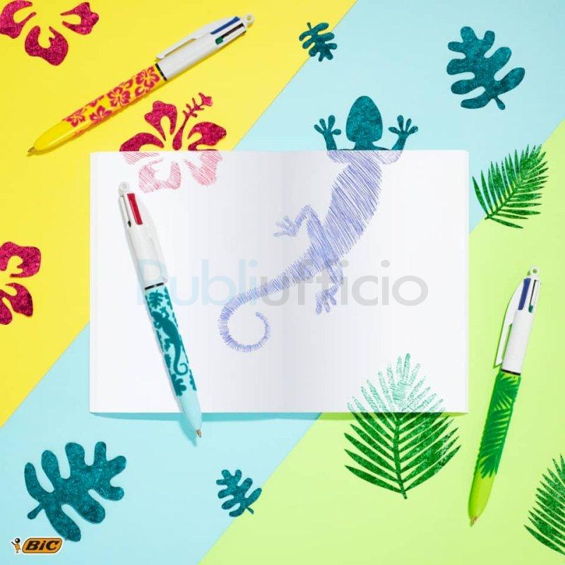 Scrivere con stile con la penna BIC 4 Colours Velours! Questa penna a sfera multifunzione offre 4 colori classici (rosso, verde, blu, nero) e una punta media da 1 mm per una scrittura pulita e precisa. Il fusto, con una morbida decorazione in velluto, è disponibile in 3 diverse fantasie: foglie, fiori o geco. In confezione da 12 fantasie assortite.