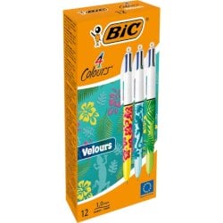 Penna a sfera a scatto BIC 4 Colours Velours M 1 mm in conf. 12 fantasie assortite - 9672771