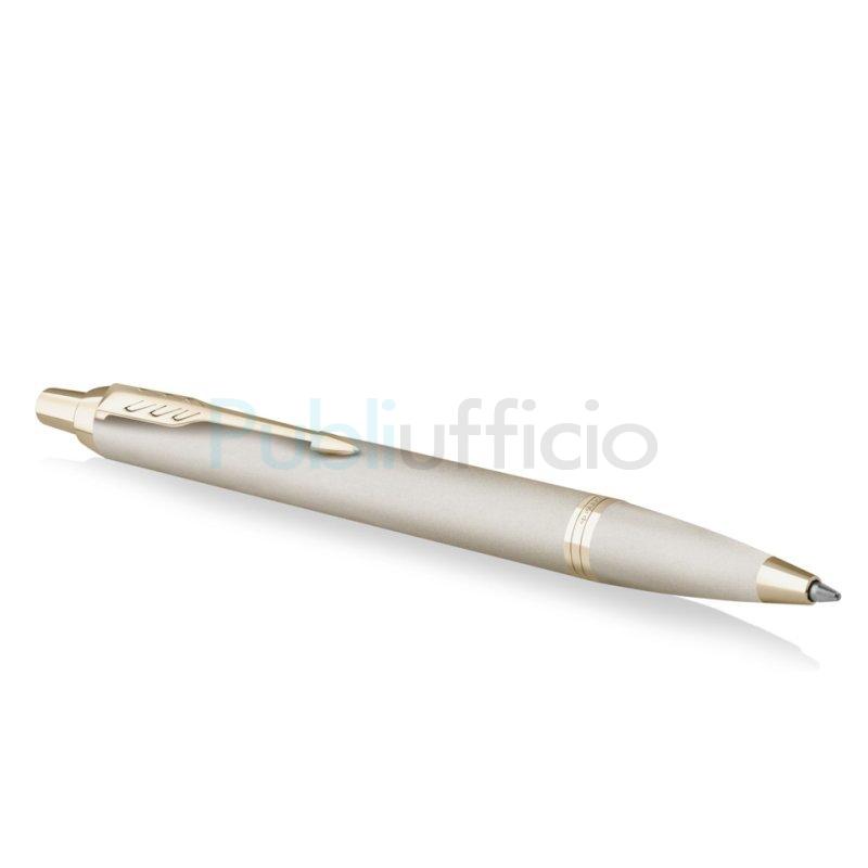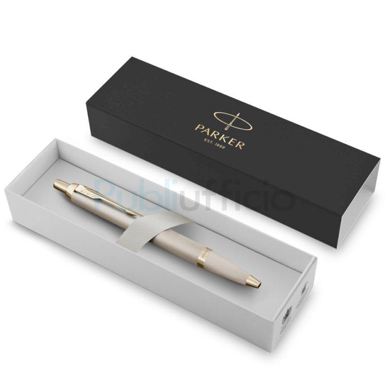 Penna a sfera a scatto monocromatica Parker punta media blu finitura champagne 2172956