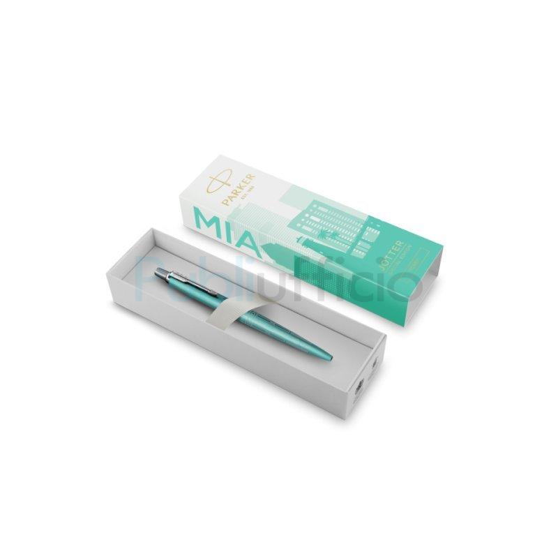 Penna a sfera a scatto Parker Jotter con tratto M e inchiostro blu. Special Edition Miami CT. Scrivi con stile ed eleganza.