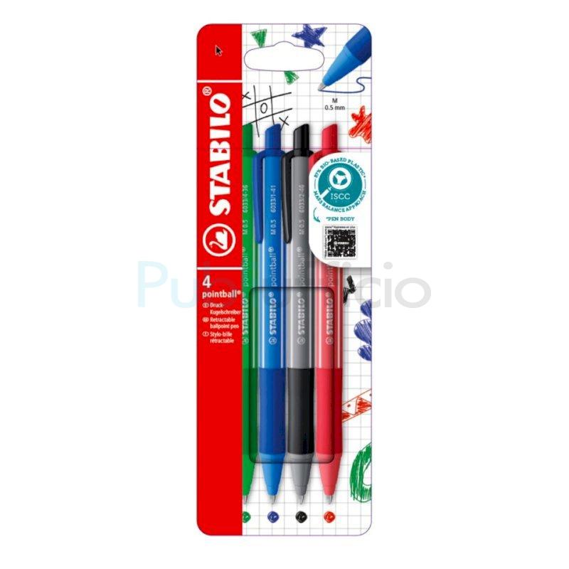 Penna a sfera a scatto Stabilo Pointball Colorful 0,5 mm assortiti - conf. 4 pezzi - 6033/4