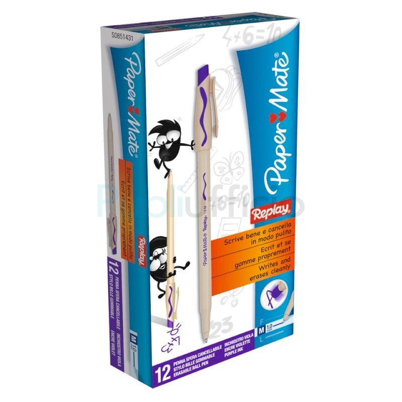 Penna a sfera cancellabile Paper Mate Replay in conf. da 12 penne violetto S0851431
