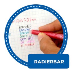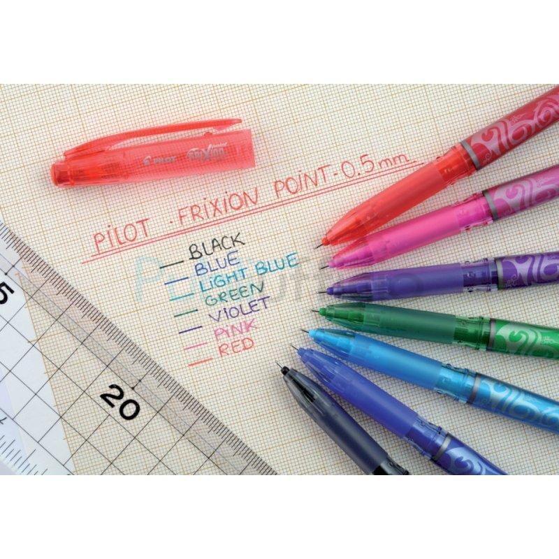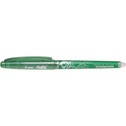 Penna a sfera con inchiostro termosensibile cancellabile. Grazie all'apposita semi sfera in plastica è possibile cancellare l'inchiostro tramite una leggera frizione senza lasciare residui o danneggiare la zona cancellata. In questo modo è possibile scrivere o riscrivere con lo stesso inchiostro. La Frixion Point è dotata di un fusto sottile con la caratteristica decorazione a tatuaggio. Ricaricabile con appositi refill ha una punta fine ad ago, per un'alta precisione di scrittura, con diametro 0,5 mm e larghezza del tratto 0,25 mm. Utilizzabile per scrivere su tutti i documenti che non richiedono l'utilizzo di un inchiostro permanente. Colore verde. Disponibile in confezione composta da 12 penne.