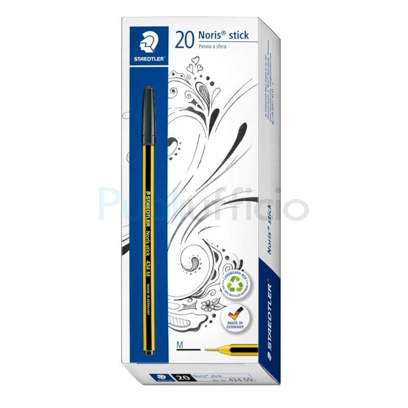 Penna a sfera Staedtler Noris Stick 434 punta F nero - conf. 20 pz - 434 F-09