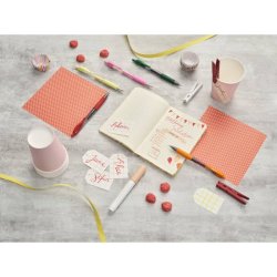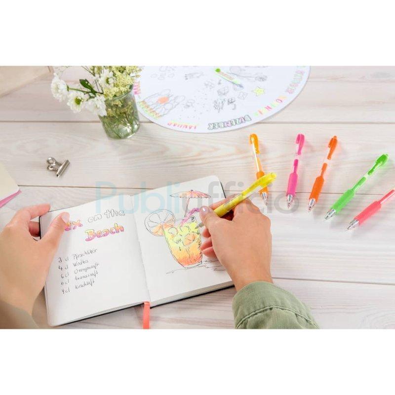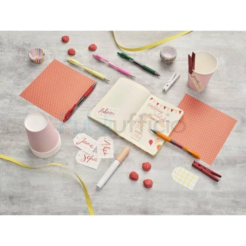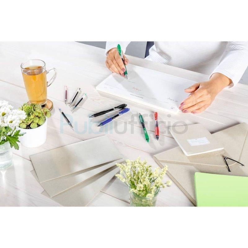 Penna a sfera a scatto con punta in metallo. L’inchiostro gel permette una scrittura fluida e precisa che resiste all’acqua e non scolora. Grip antiscivolo e clip dello stesso colore dell’inchiostro. Colore: verde.
