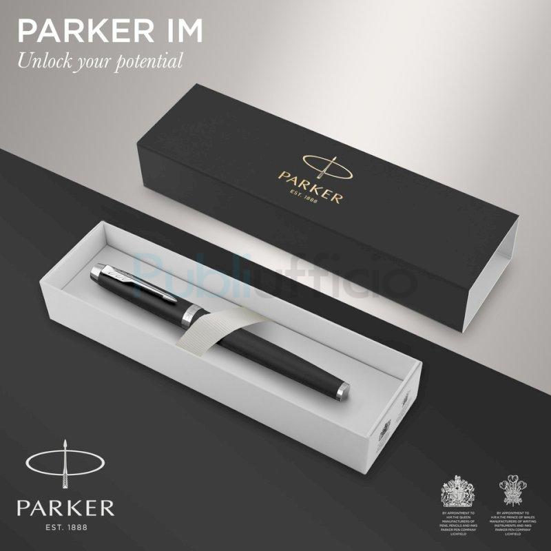 Parker ''IM ENTRY LINE'' roller pennino ''F'' inchiostro nero. Fusto nero opaco con puntale cromato. Punta fine con inchiostro nero. Design eleganti, raffinati e resistenti si incontrano con una forma moderna e affusolata. La finitura luminosa in acciaio inossidabile si abbina al puntale cromato e alla distintiva clip a freccia Parker. Il resistente pennino in acciaio inossidabile offre un’esperienza di scrittura affidabile e personalizzata. Il comodo design ergonomico è frutto dell’eccezionale maestria artigianale di Parker e ne ricorda la lunga tradizione. Perfetto per studenti e professionisti. Confezione regalo.