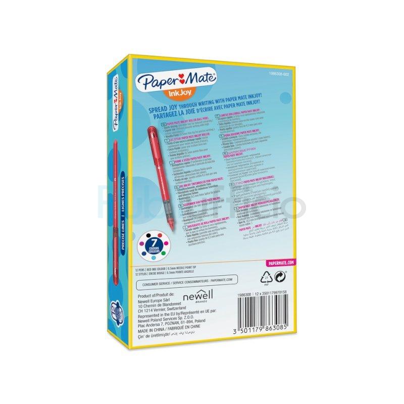 Penna roller Paper Mate Inkjoy punta ad ago fine 0,5 mm - conf. da 12 - rosso 1986308