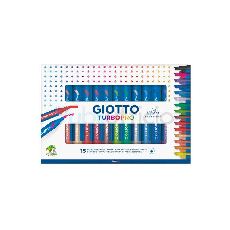 Pennarelli Giotto TurboPro doppia punta scalpello-pennello - conf. da 15 colori assortiti - F427800